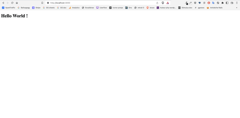 Avant de pouvoir accéder à notre application rails (ne contenant aucun controller ni model), ne pas oublier de lancer le serveur webpack :